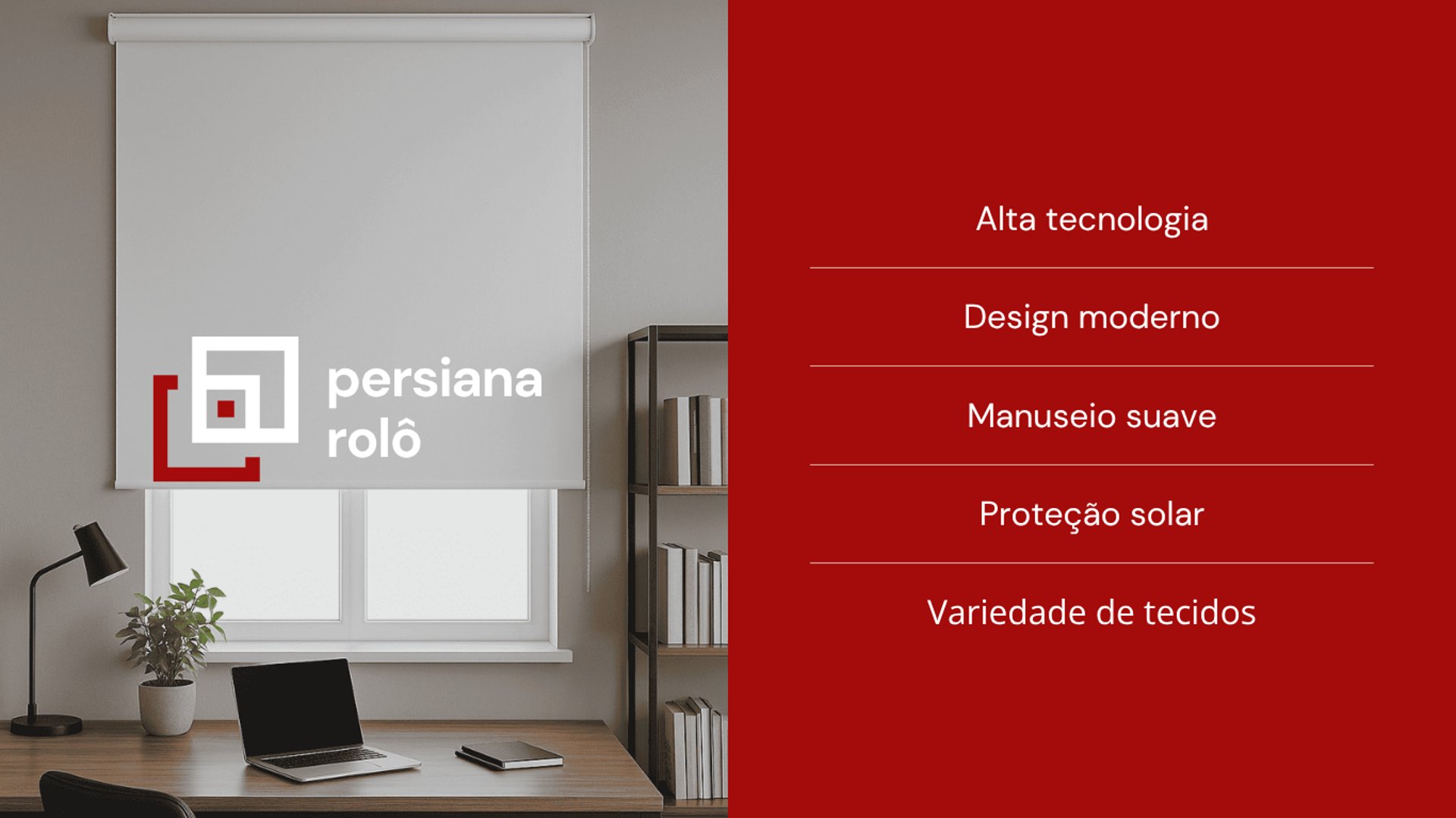 A persiana Rolô é um modelo moderno e funcional, formado por um tecido que se enrola em um tubo na parte superior. Ela permite controlar a entrada de luz de forma prática, podendo ser feita em diferentes versões, como tela solar, translúcida ou blackout. Com design clean, é ideal para qualquer ambiente, garantindo conforto, privacidade e um visual elegante sem ocupar espaço.