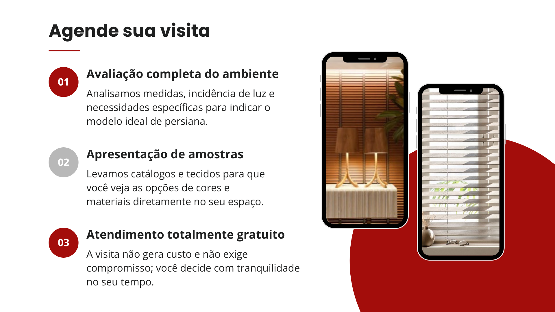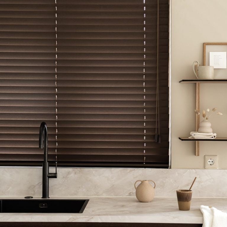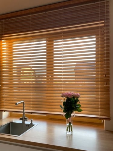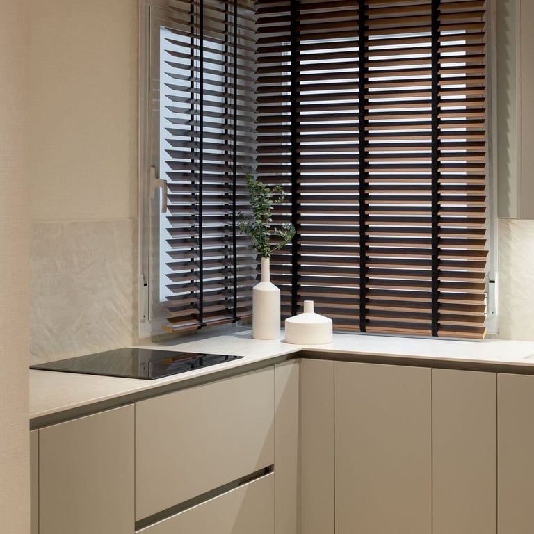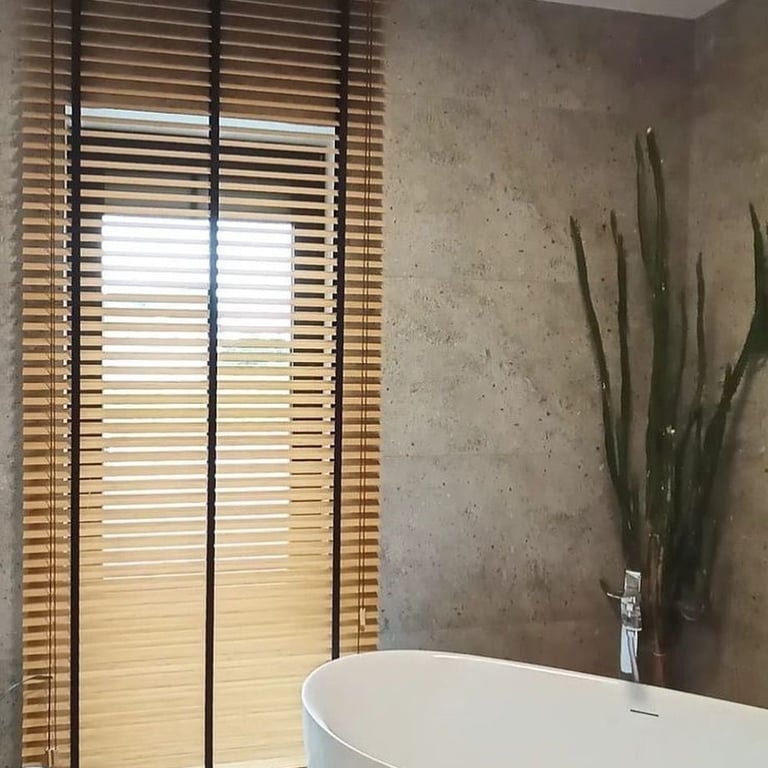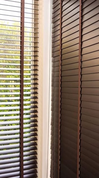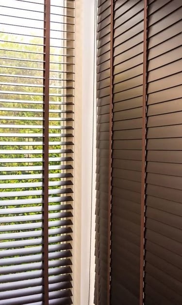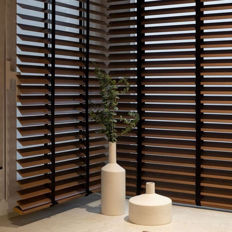 Lâminas ajustáveis que podem ficar abertas ou fechadas, permitindo controlar a privacidade e a entrada de luz de acordo com a necessidade do ambiente