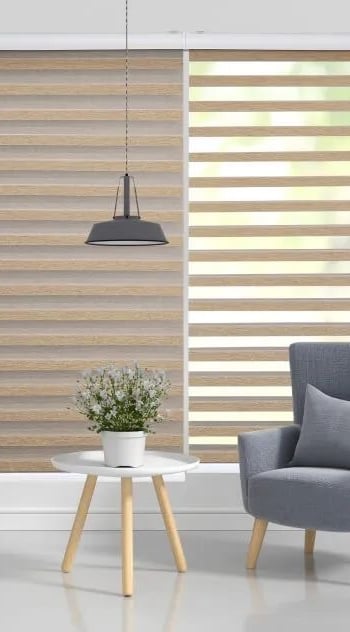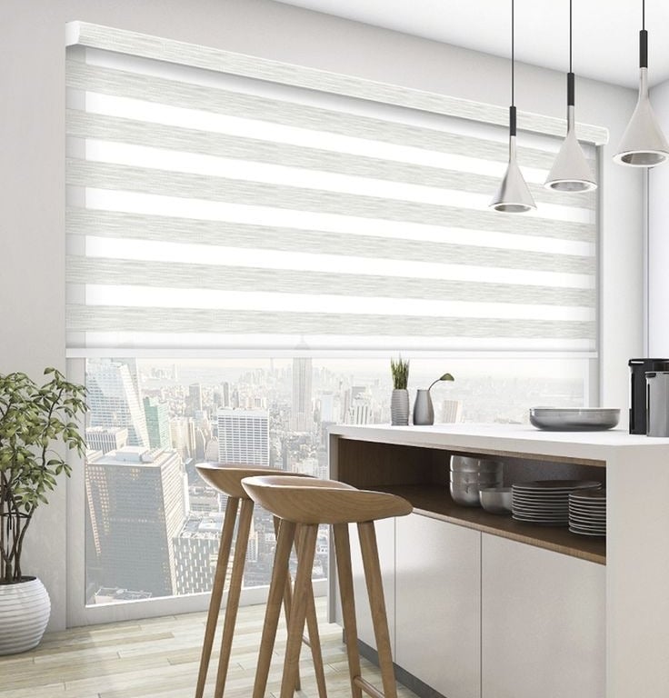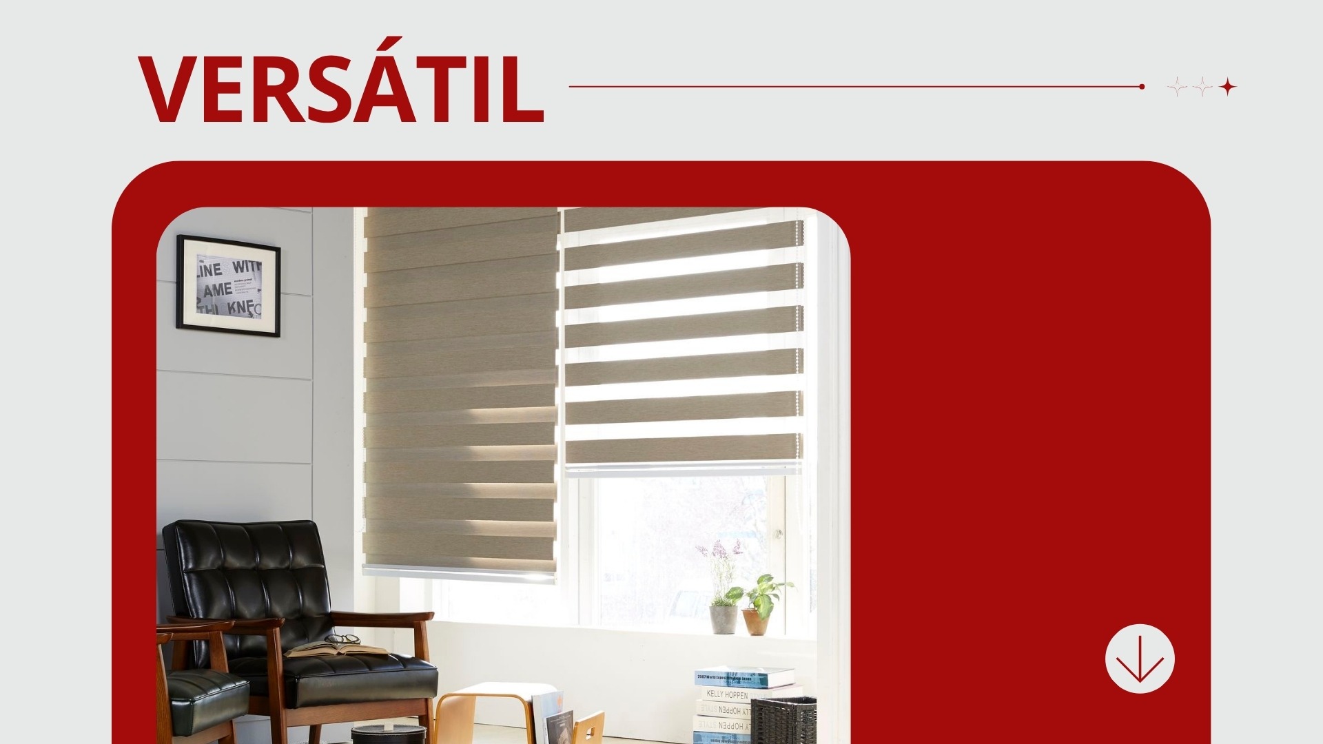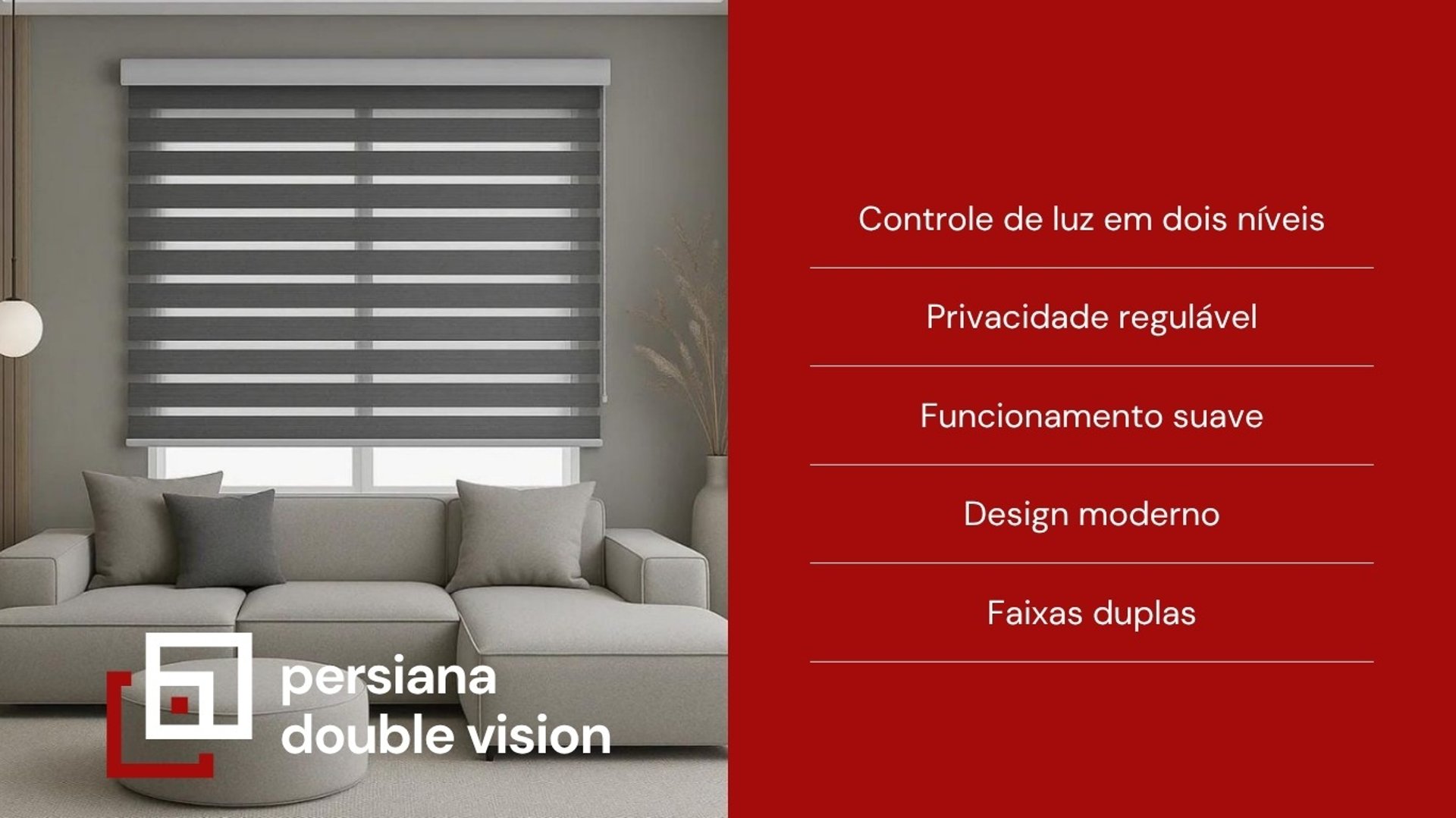 A tecnologia da Cortina Double Vision permite ajustar facilmente a luminosidade e a privacidade. Composta por duas camadas de tecido que se intercalam, ela possibilita visão total do ambiente externo quando as faixas horizontais se alinham. Seu sistema moderno traz aconchego, controle preciso de luz e um visual sofisticado para qualquer espaço.