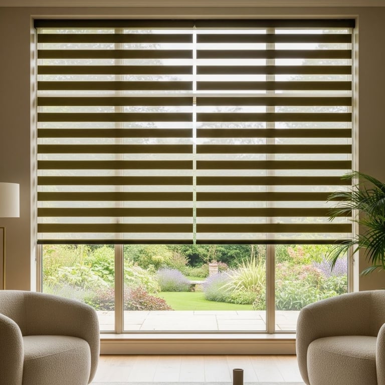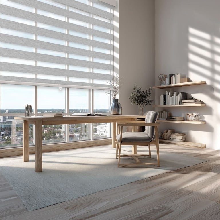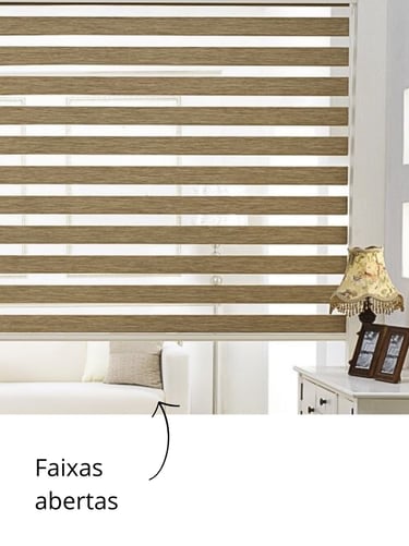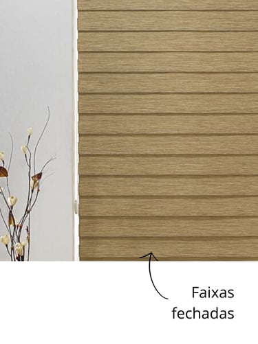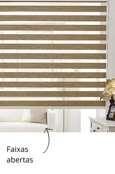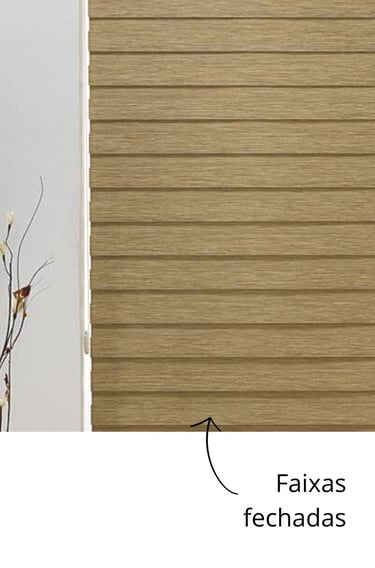 Quando as faixas se alinham, oferecem visão externa; quando alternadas, garantem privacidade. Moderna e versátil, é ideal para quem busca conforto visual e um acabamento sofisticado no ambiente