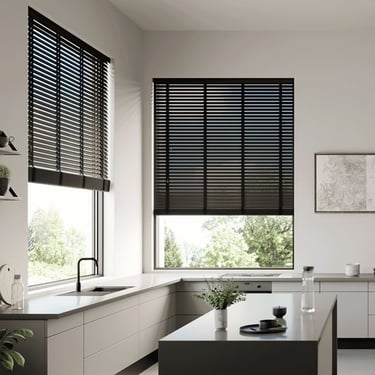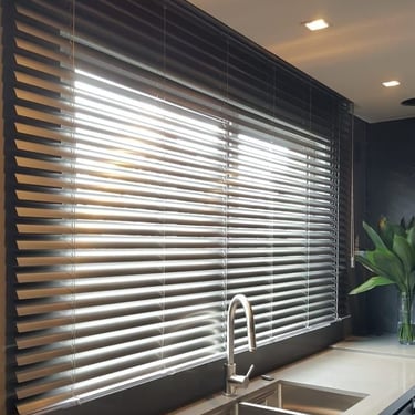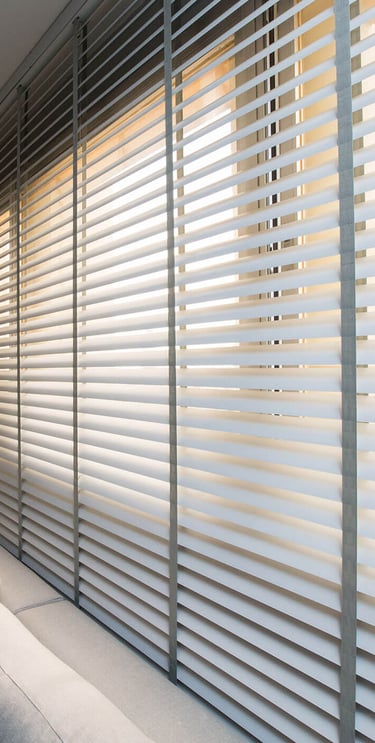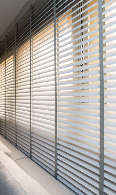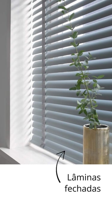 Lâminas ajustáveis que podem ser inclinadas para cima ou para baixo, permitindo controlar a entrada de luz e a privacidade com precisão, enquanto adicionam um visual clean e atemporal ao ambiente