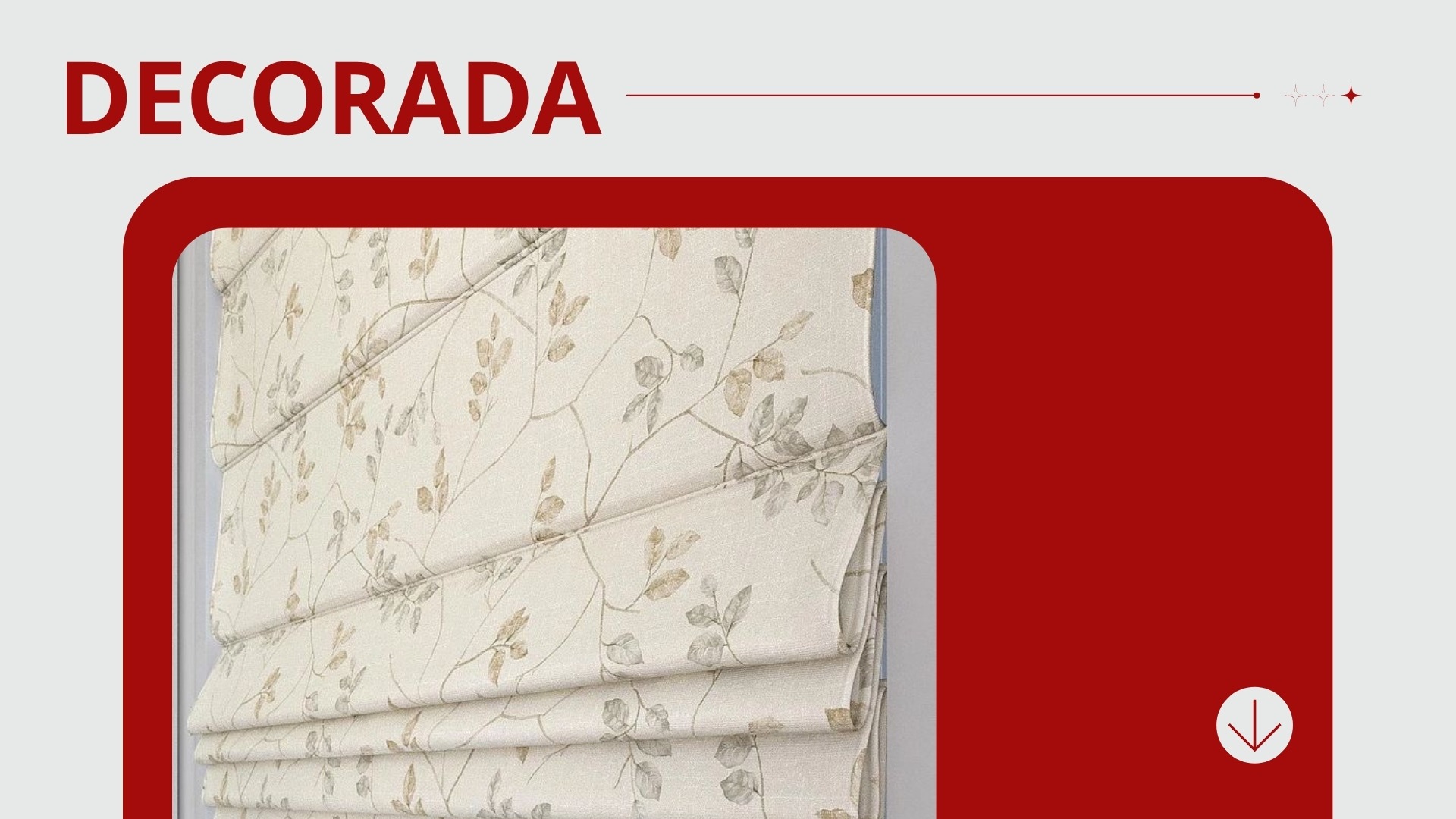 A Persiana Romana Decorada adiciona estilo ao ambiente com estampas aplicadas no tecido. O visual diferenciado destaca a decoração de forma elegante