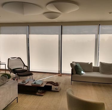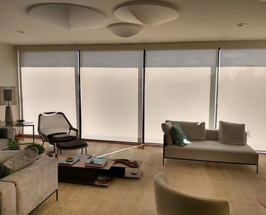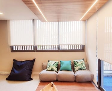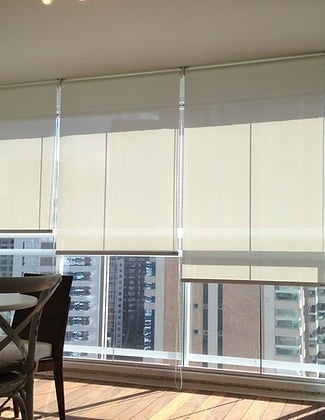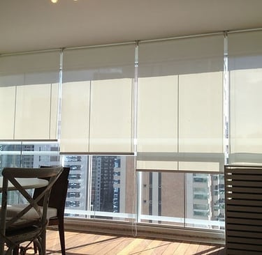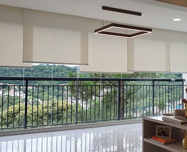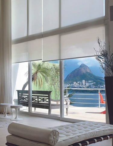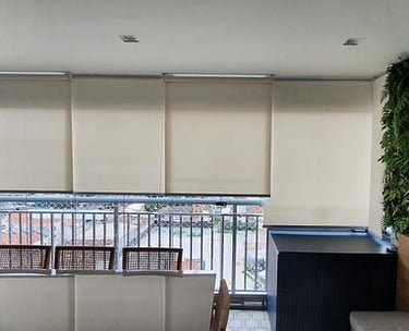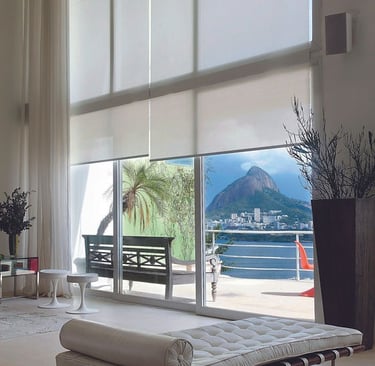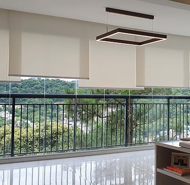 A Persiana Rolô é prática e moderna, com tecido que se enrola em um tubo na parte superior, facilitando o controle da luminosidade. Disponível em versões translúcidas ou blackout, é indicada para sacadas, varandas, salas e escritórios.