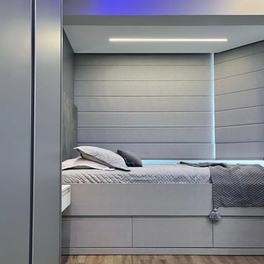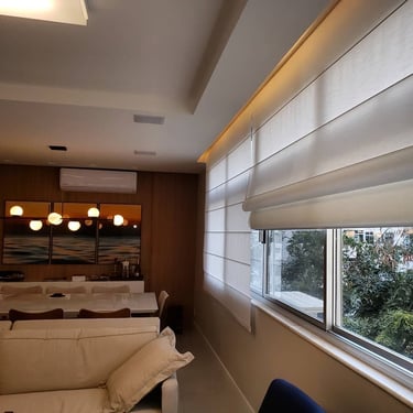 Em linhas retas e elegantes, a Cortina Romana se adapta com harmonia aos ambientes de estilo moderno. Ela pode ser produzida em tecidos com proteção solar, que ajudam a filtrar os raios UV, reduzindo o calor e a entrada de brilho excessivo. As versões decorativas oferecem texturas variadas que complementam a estética do espaço, enquanto os modelos blackout proporcionam escurecimento eficiente e maior privacidade.